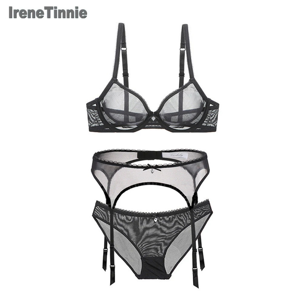 Irene Tinnie Lace Sheer Garter Sexy Lingerie Set Women Intimates Underwire See Through Bra And is a popular picture for sexy and hot.