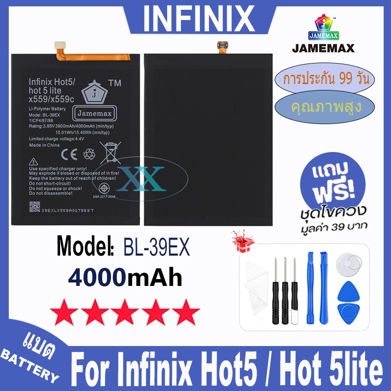 JAMEMAX แบตเตอร เชคสขภาพแบตได รบประกน แบตเตอรใชสำหรบ Infinix Hot Hot lite