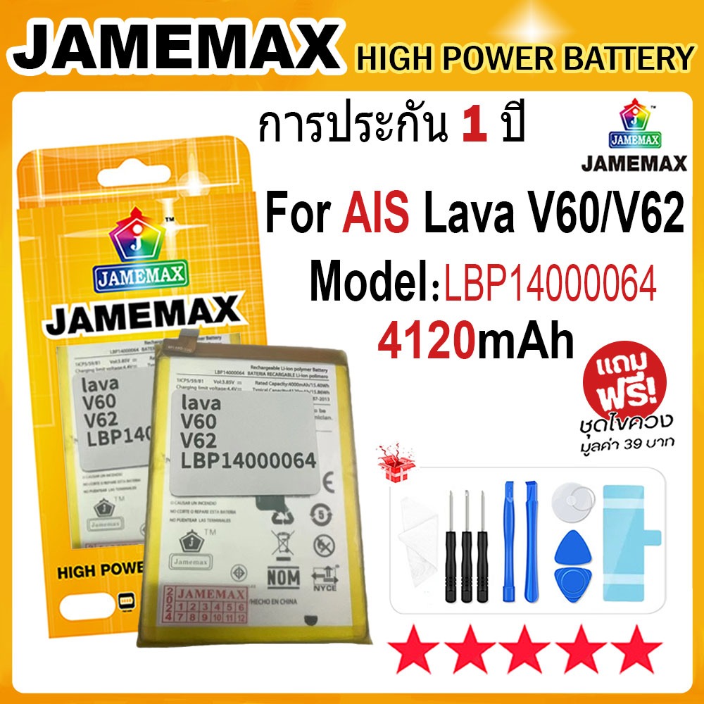 JAMEMAX แบตเตอร AIS Lava V60 V62 Battery Model LBP14000064 4120mAh ฟรชดไขควง hot is a popular picture for sexy and hot.