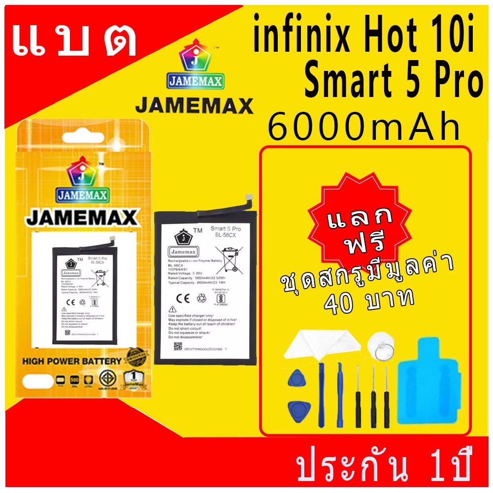 JAMEMAX แบตเตอร Battery infinix Hot 10i X659 Smart 5 Pro model BL 58CX แบตแท อนฟนกซ ฟร