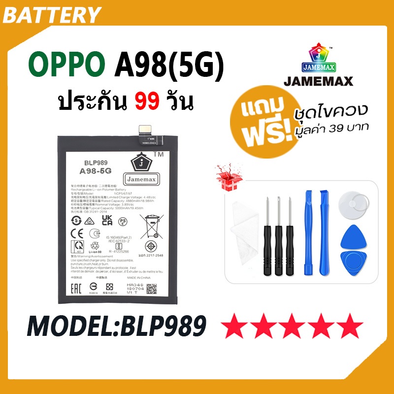 JAMEMAX แบตเตอร OPPO A98 5G Battery oppo a98 5g Model BLP989 ฟรชดไขควง hot 5000mAh 72048