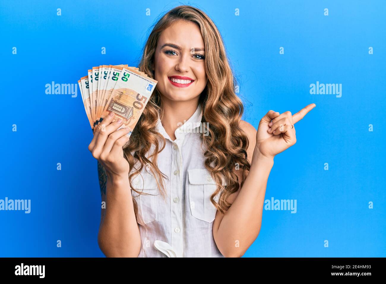 Jeune Fille Blonde Portant Des Billets En Euros Souriant Souriante Et is a popular picture for sexy and hot.