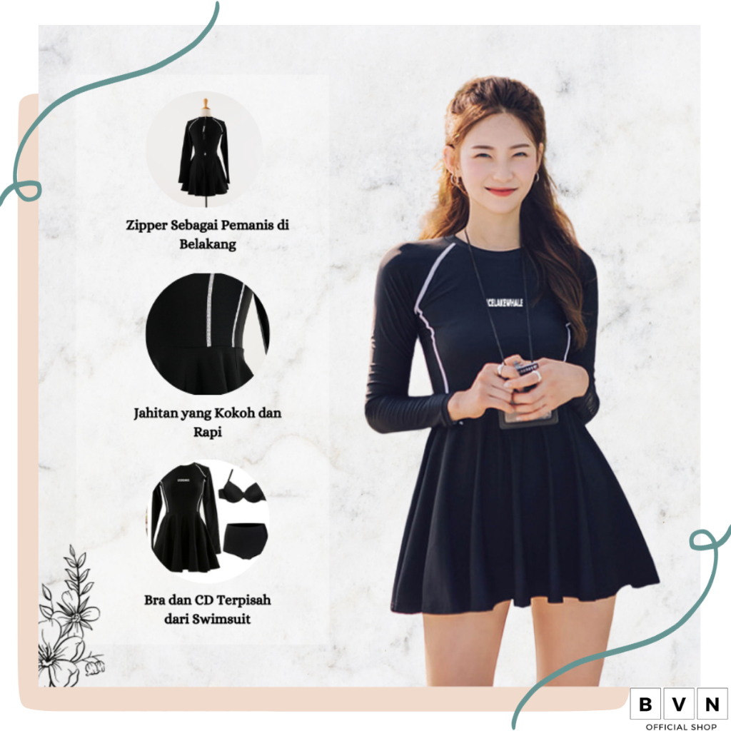 Tag : Jual BVN Swimsuit Baju Renang Swimskirt Lengan Panjang Wanita Bikini Polos Import 8080 Shopee