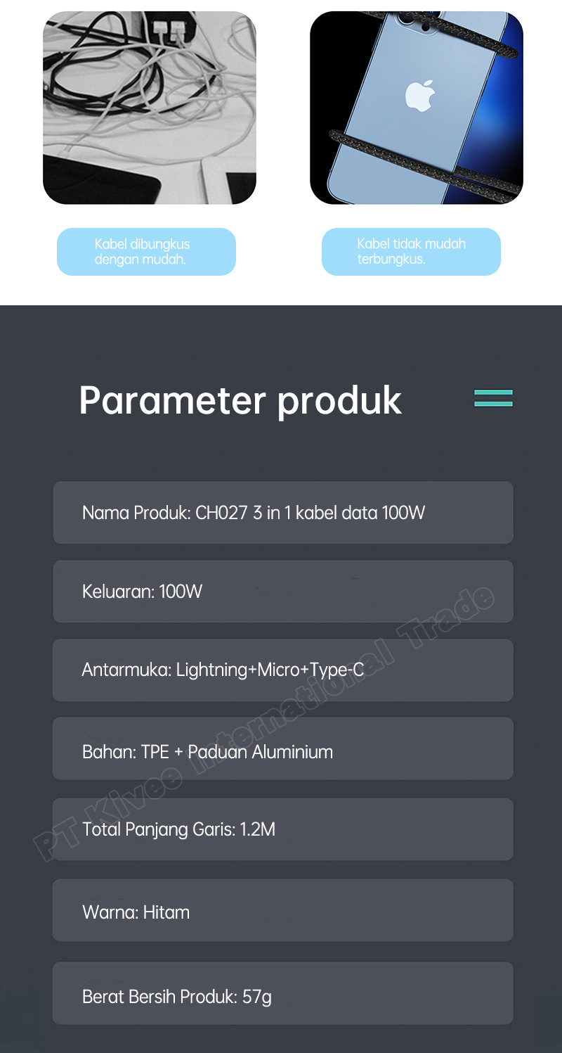Related pictures for Jual HOT BASIKE Kabel Data IPhone Fast Charging 100W Type C Lightning Micro USB 3 In 1 Safe