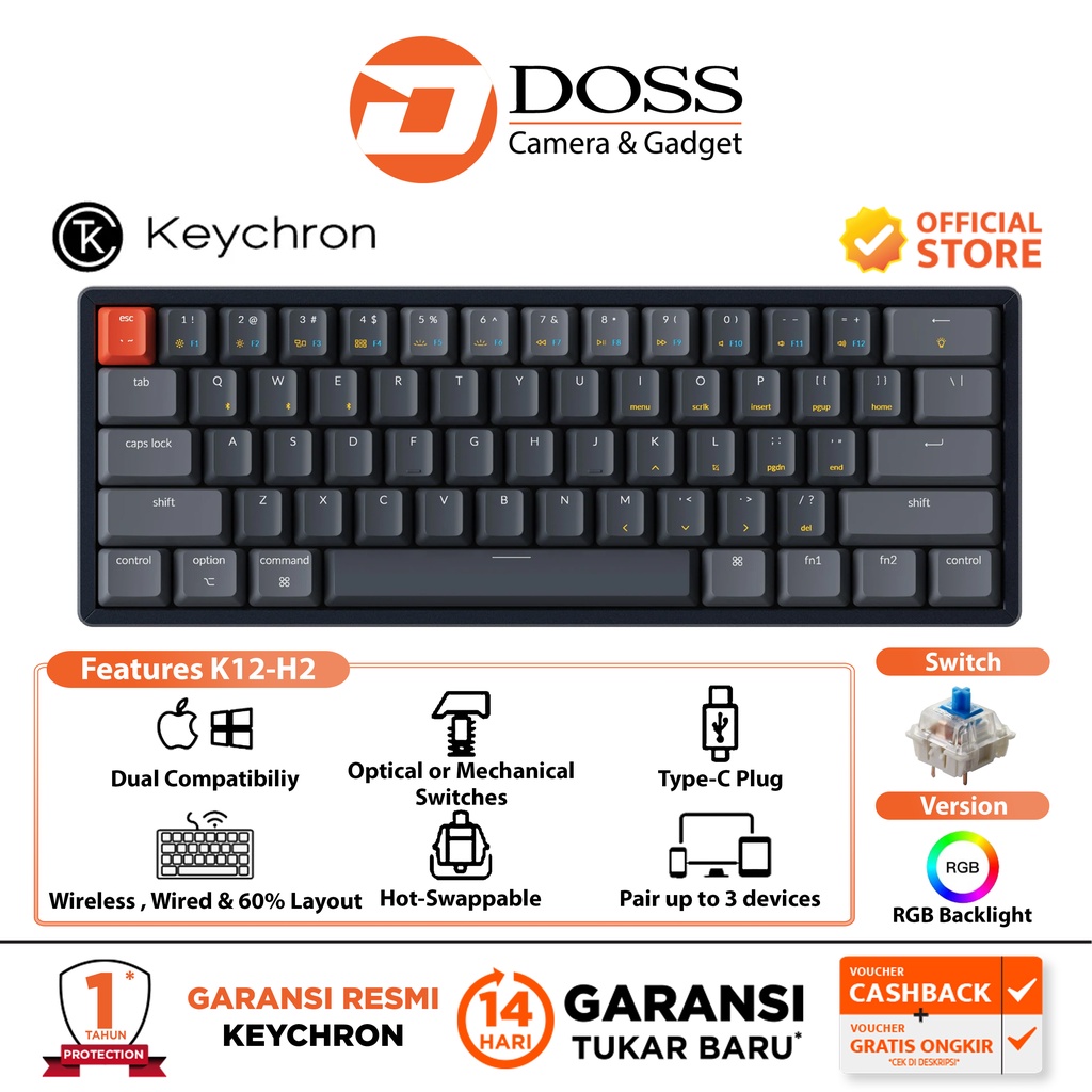 Tag : Jual Keychron K12 H2 RGB Backlight Gateron Hot Swappable Blue Swicth Shopee Indonesia