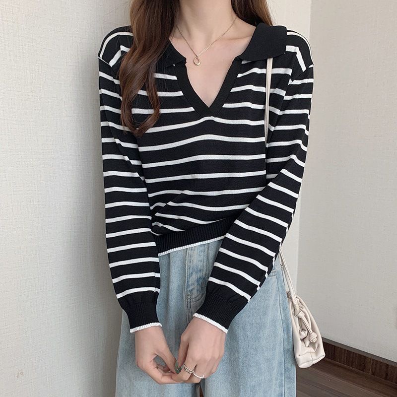 Tag : Jual LINGERIE MASTER T 21 Knitwear Sweater Crop Rajut Sweater Bergaris Baju Rajut Import