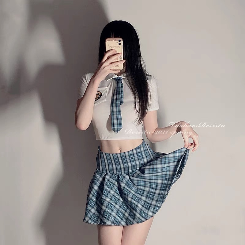 Jual Lingerie Wanita Kostum Cosplay Seksi Cosplay Pakaian Dalam Set Mini Rok Kotak Kotak A5010 is a popular picture for sexy and hot.