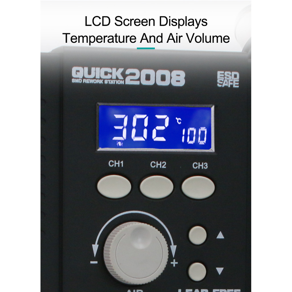 Tag : Jual Original Quick 2008 Lead Free ESD Digital Display 700W Hot Air Smd Rework Soldering Station