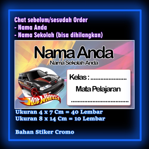Tag : Jual Stiker Label Buku HotWheels Hot Wheels Cars Car Karakter Lucu Custom Lebel Nama Cromo Murah