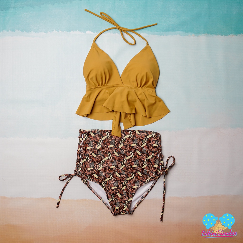 Tag : Jual Swimsuit Set Bikini Baju Renang Wanita High Waist Triangle Yellow Mustard And Autumn Leaf