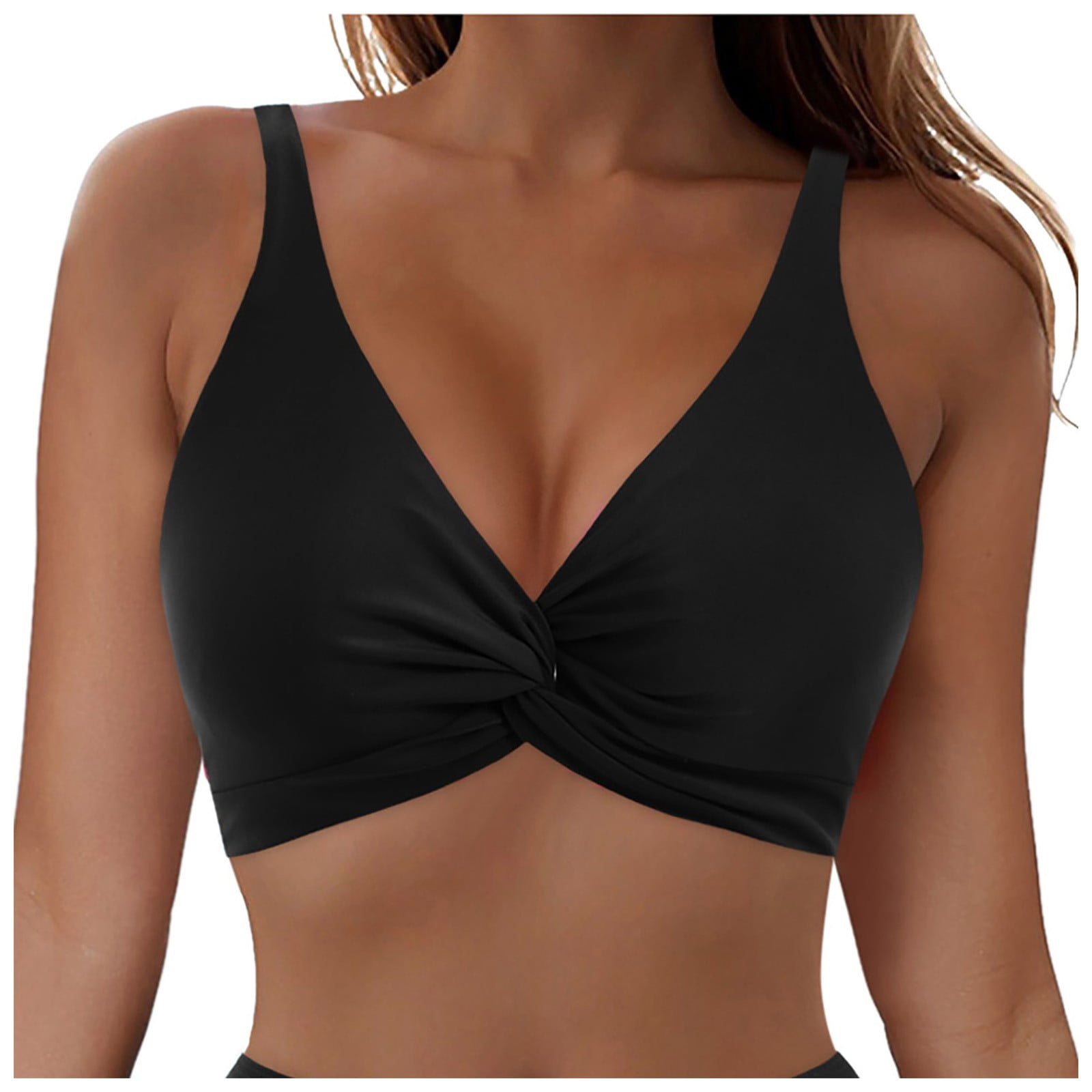 KAPRIOY Bikini Tops For Women Cropped Tankini Swimsuits Top Beach Padded Knot Twist Cut Out is a popular picture for sexy and hot.