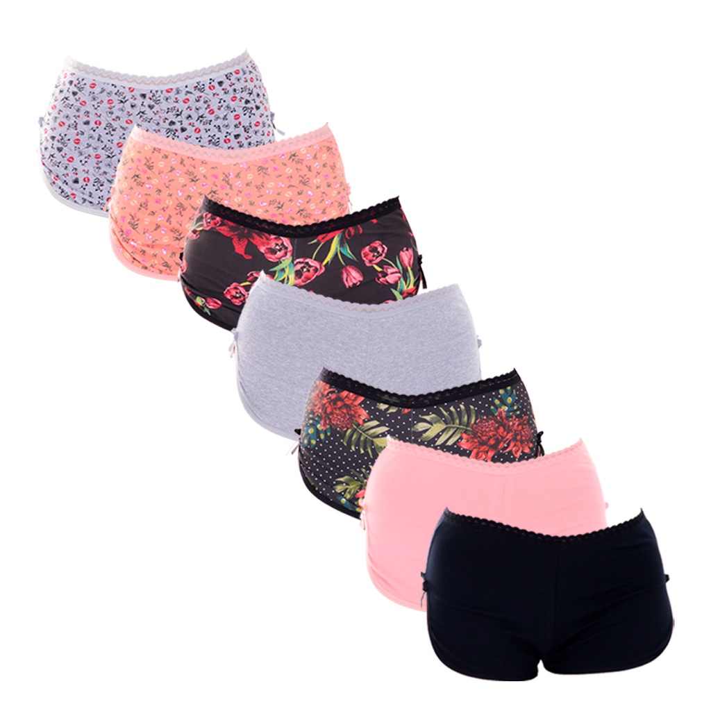 KIT 7 Calcinhas Short Lingerie Algodão Pentado Bombom Shopee Brasil