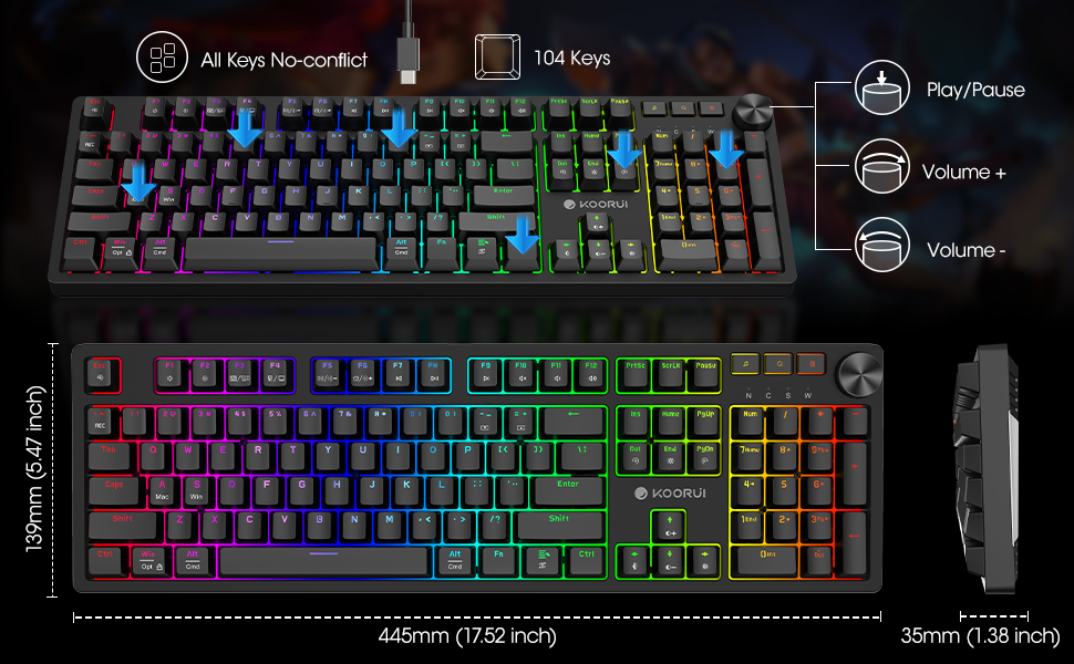 KOORUI MK Powered By HKC Keys Hot Swappable Mechanical Keyboard Wired RGB Backlit pictures has 500 x 400 · 50 kB · jpeg.