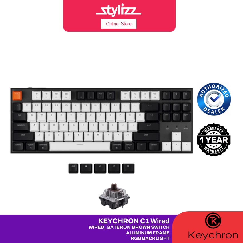 Tag : Keychron C1 Wired Mechanical Keyboard TKL Hot Swappable Switch RGB Backlight Gateron Switch