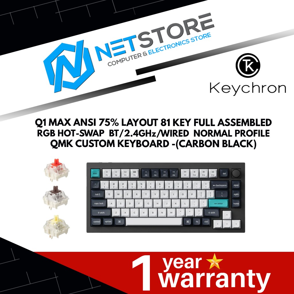 Tag : Keychron Q1 Max ANSI 75 Layout 81 Key Carbon Black Full Assembled Knob RGB Hot Swap BT 2 4GHz