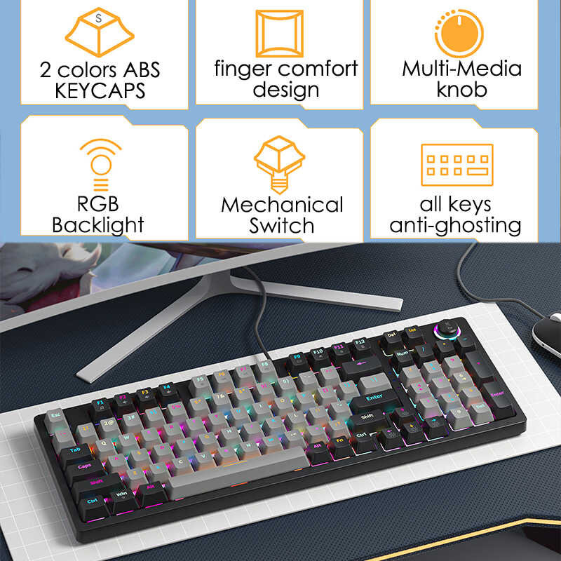 Tag : Keys Mechanical 98 Volume Button Hot Swap Wired RGB Backlit Gaming Keyboard Blue Red Switch