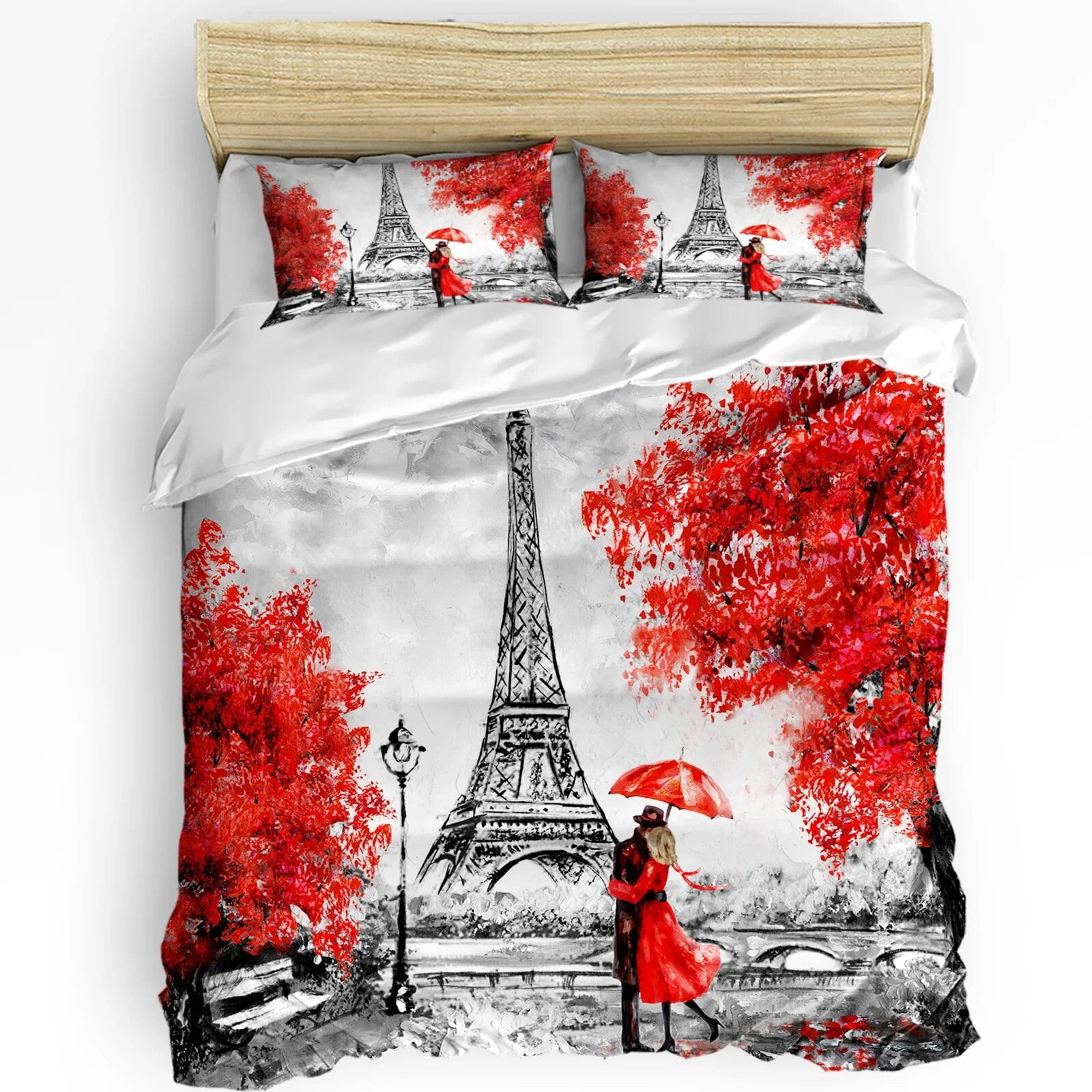Kiss Bedding Set For Bedroom Bed Home Floral Paris Symbols Landmarks Eiffel Tower Hot Air Duvet