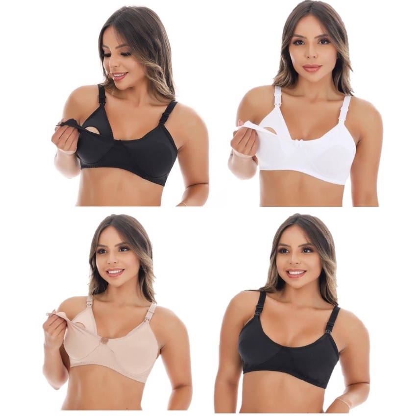 Kit 4 Sutiã Reforçado Amamentação Microfibra Lingerie Gestante Pós Parto Soutien Shopee Brasil