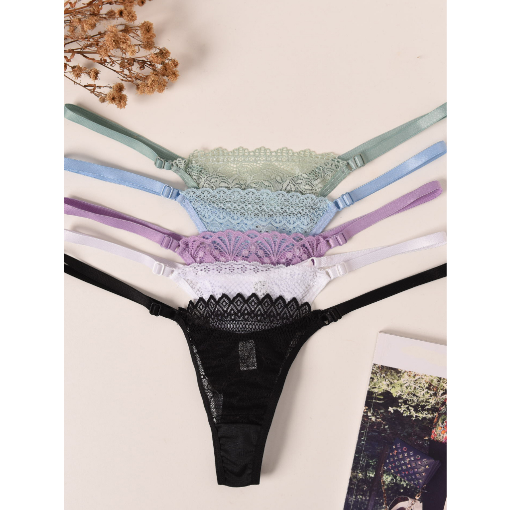 Tag : Kit 5 Calcinhas Renda e Microfibra Fio Duplo Alças Reguláveis String Lingerie Feminina Moda