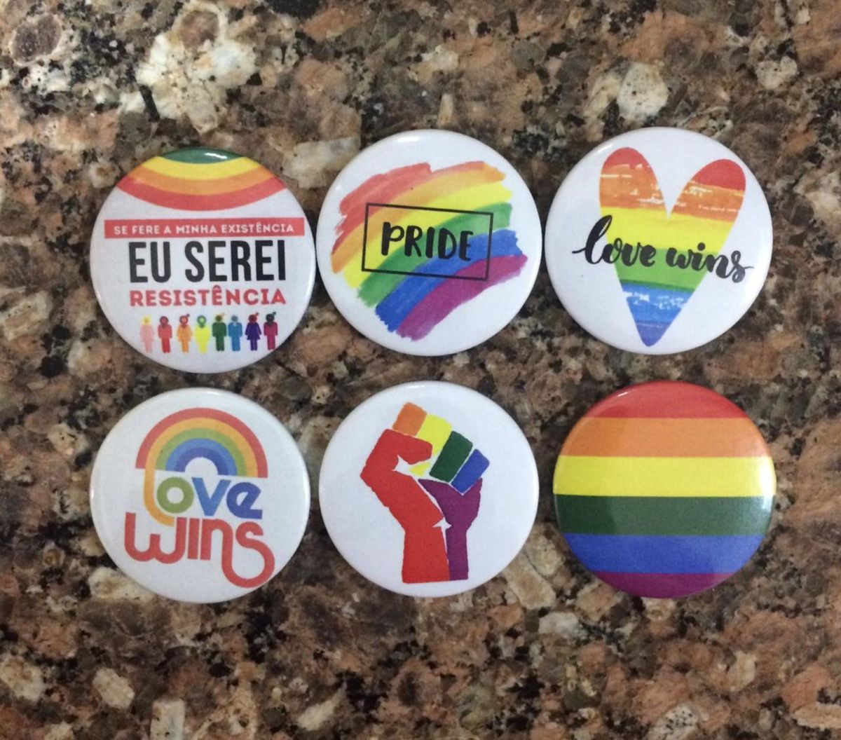 Tag : Kit 6 Bottons Botons Lgbt Pride Resistencia Gay Produto Vintage E Retro Wtf Bottons Nunca