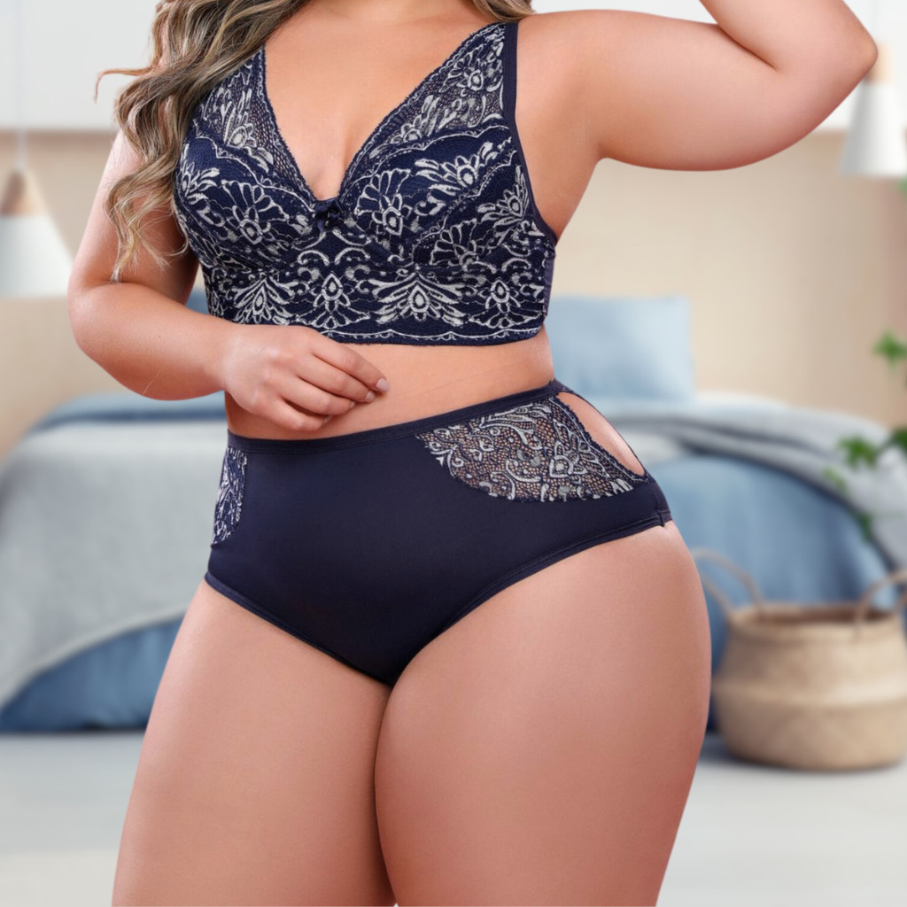 Tag : Kit C Conjunto Lingerie Confort Plus Size Premium Cropped Rendado Calcinha Segura Barriga