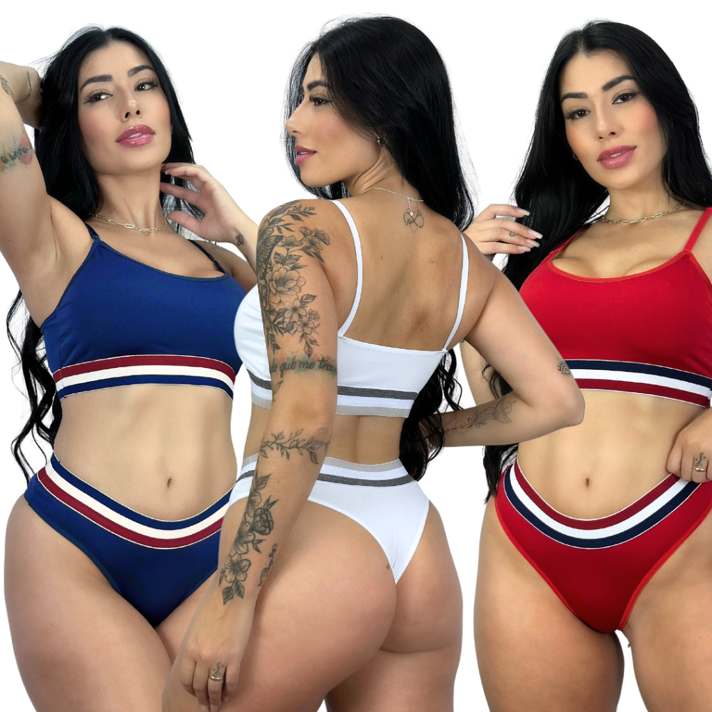 Kit Conjunto de Lingerie Calcinha fio Top academia sem bojo Moda Íntima Estili Lingerie is a popular picture for sexy and hot.