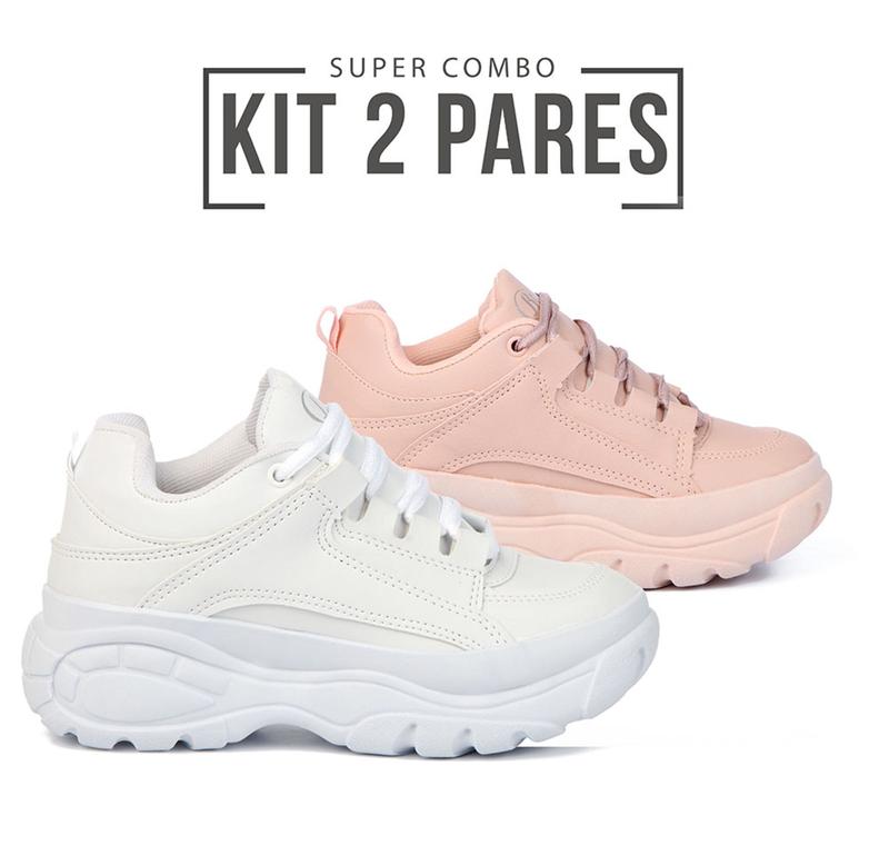 Tag : Kit Pares Tênis Feminino Plataforma Buffalo Confort Branco Nude New Feet Tênis Feminino