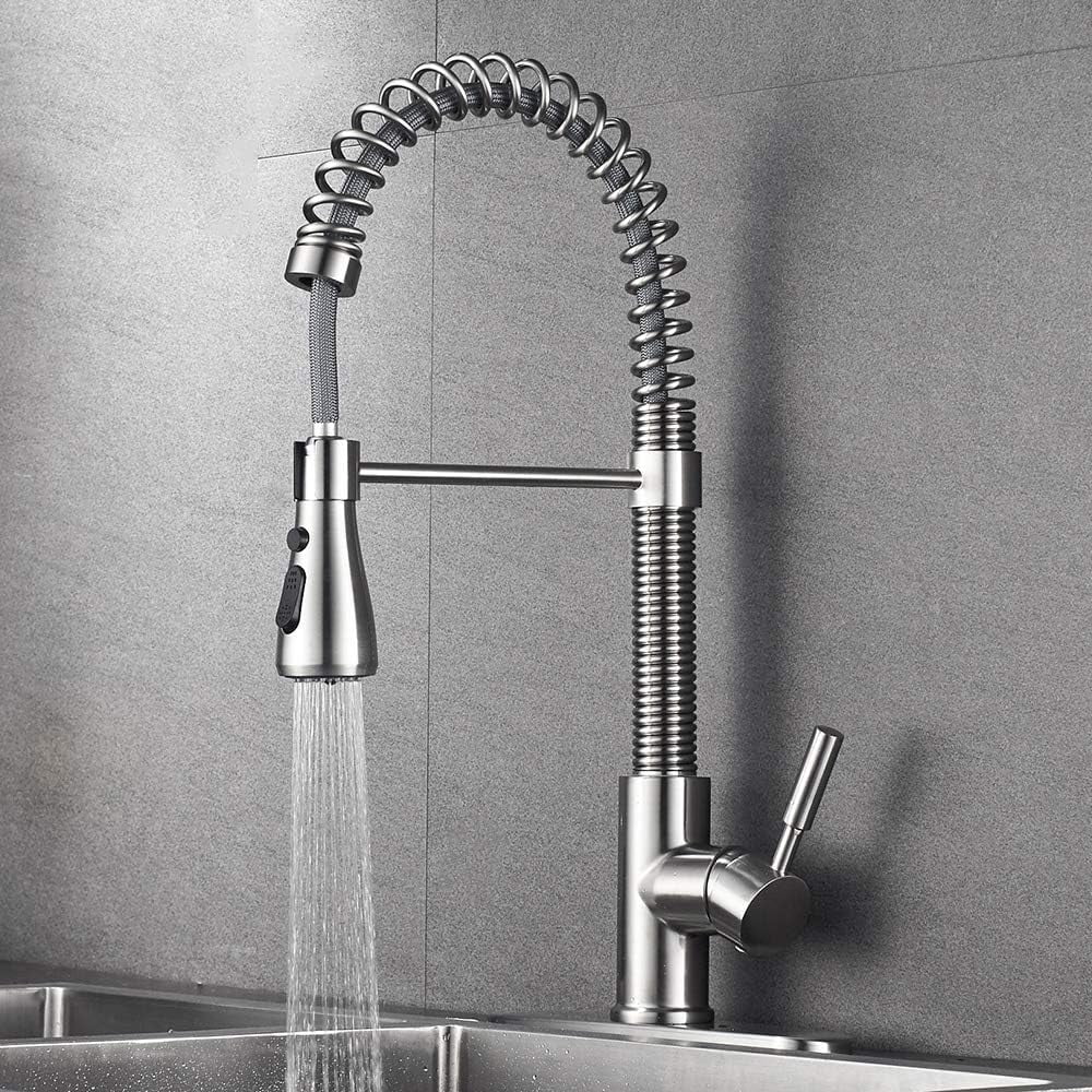 Kitchen Faucets For Kitchen Sink Single Pull Out Spring Spout Mixers Tap Brushed Nickel Hot is a popular picture for sexy and hot.