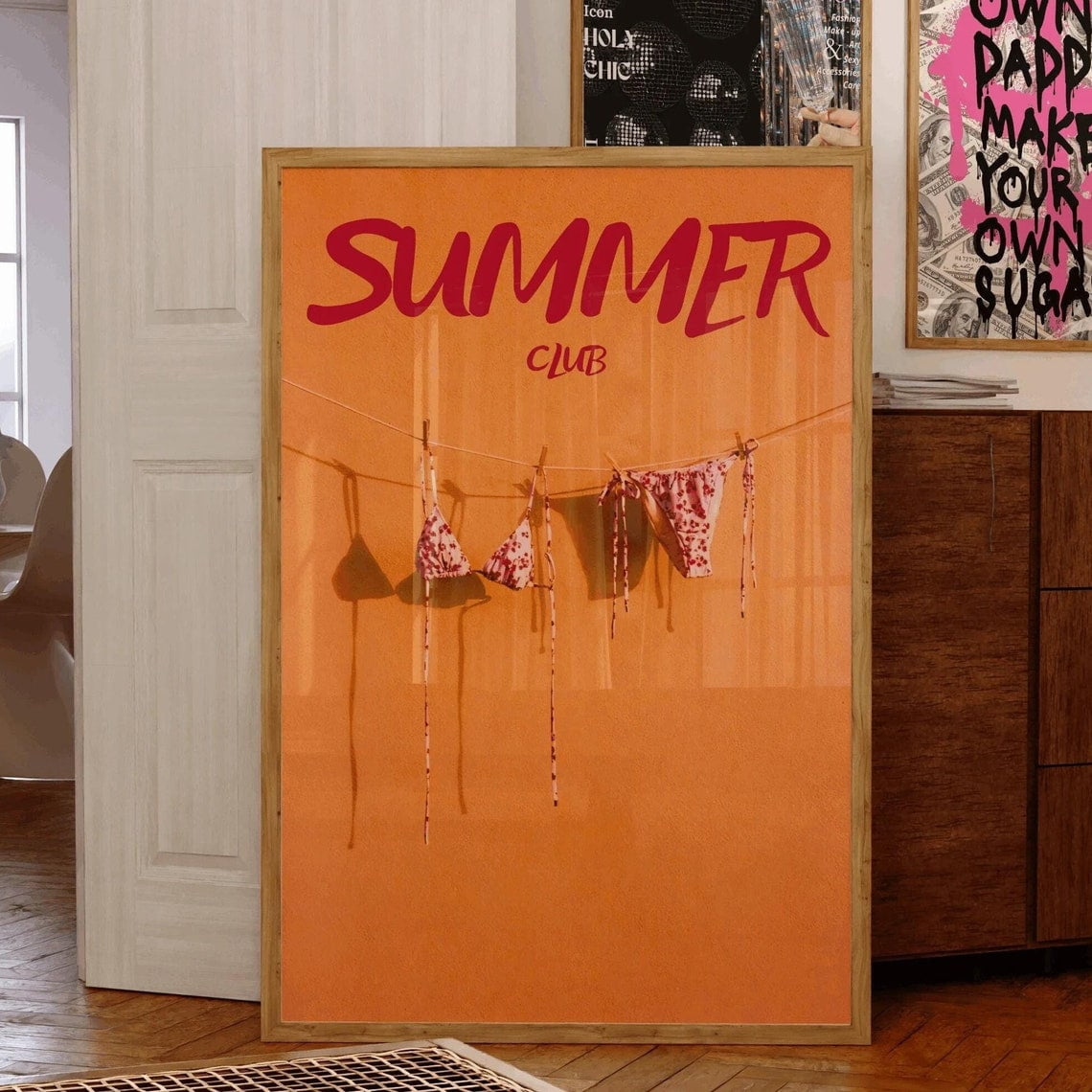 Tag : Kna Prints Summer Print Orange Wall Art Bikini Poster Typography Print 70S Art Girly Wall