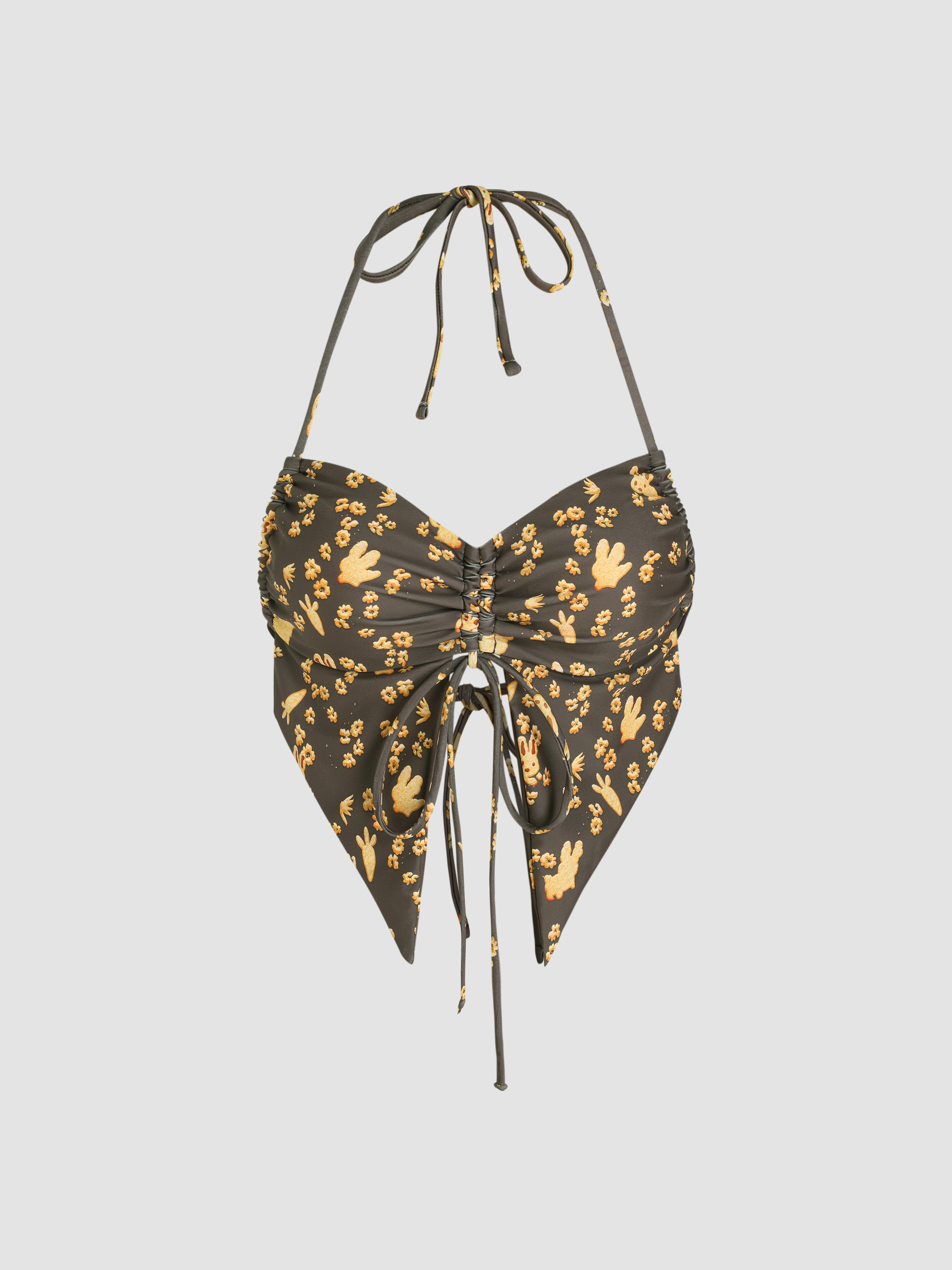 Tag : Knit Fabric Floral Halter Drawstring Bikini Top For Vacation Swimming Pool Beach