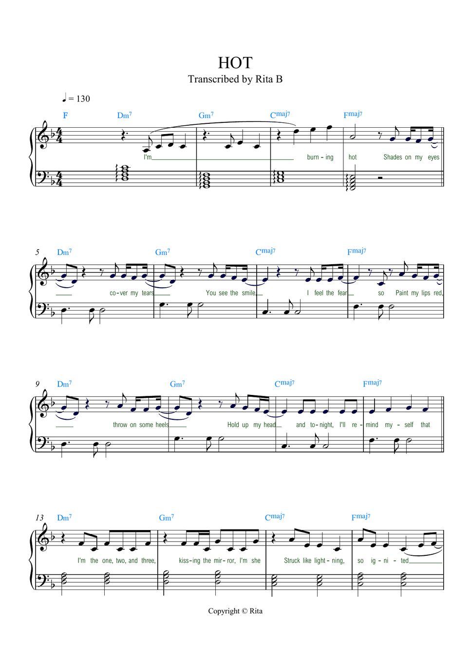 Tag : LE SSERAFIM HOT Korean And English Versions Lyrics Chords Romanized Sheet Music By RITA B