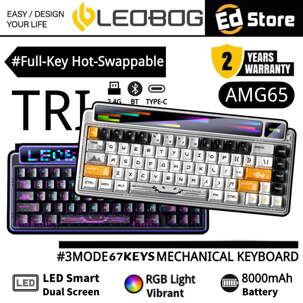 Tag : LEOBOG AMG Tri Mode Gasket Mechanical Keyboard Layout Hot Swappable LED Smart Dual Screen