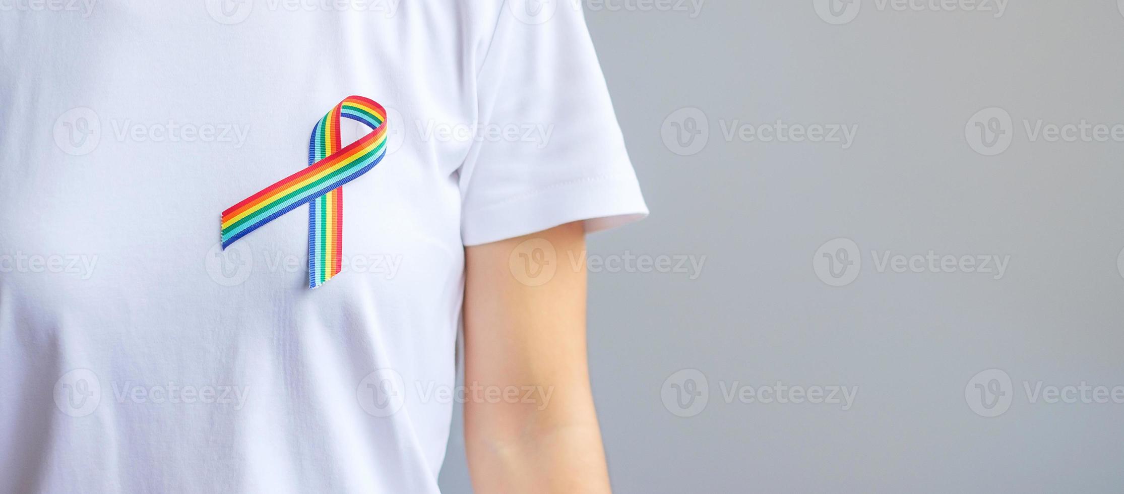 Tag : LGBTQ Rainbow Ribbon For Support Lesbian Gay Bisexual Transgender And Queer Community And
