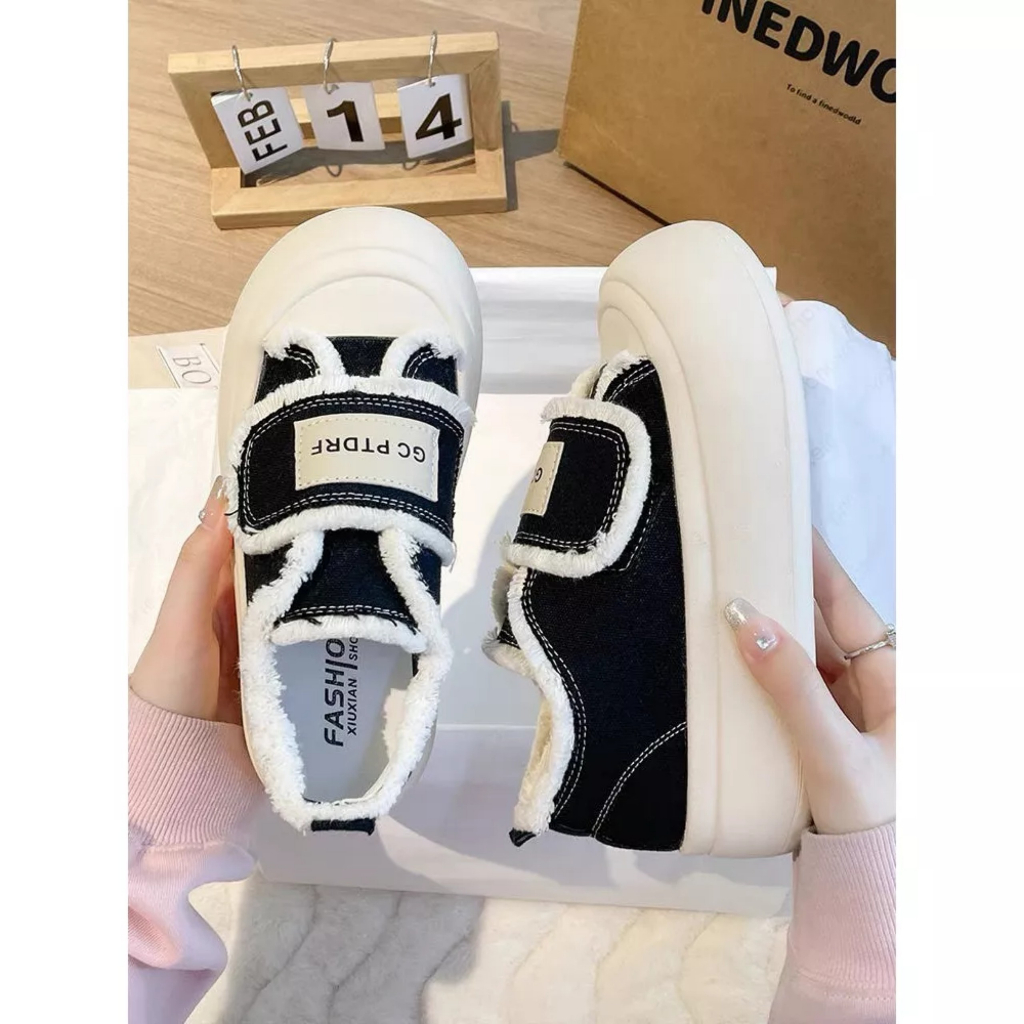 LOẠI 1 SẴN Giày thể thao nữ vải canvas đế bằng bánh mì cao 4cm hot mới ulzzang Basic màu đen