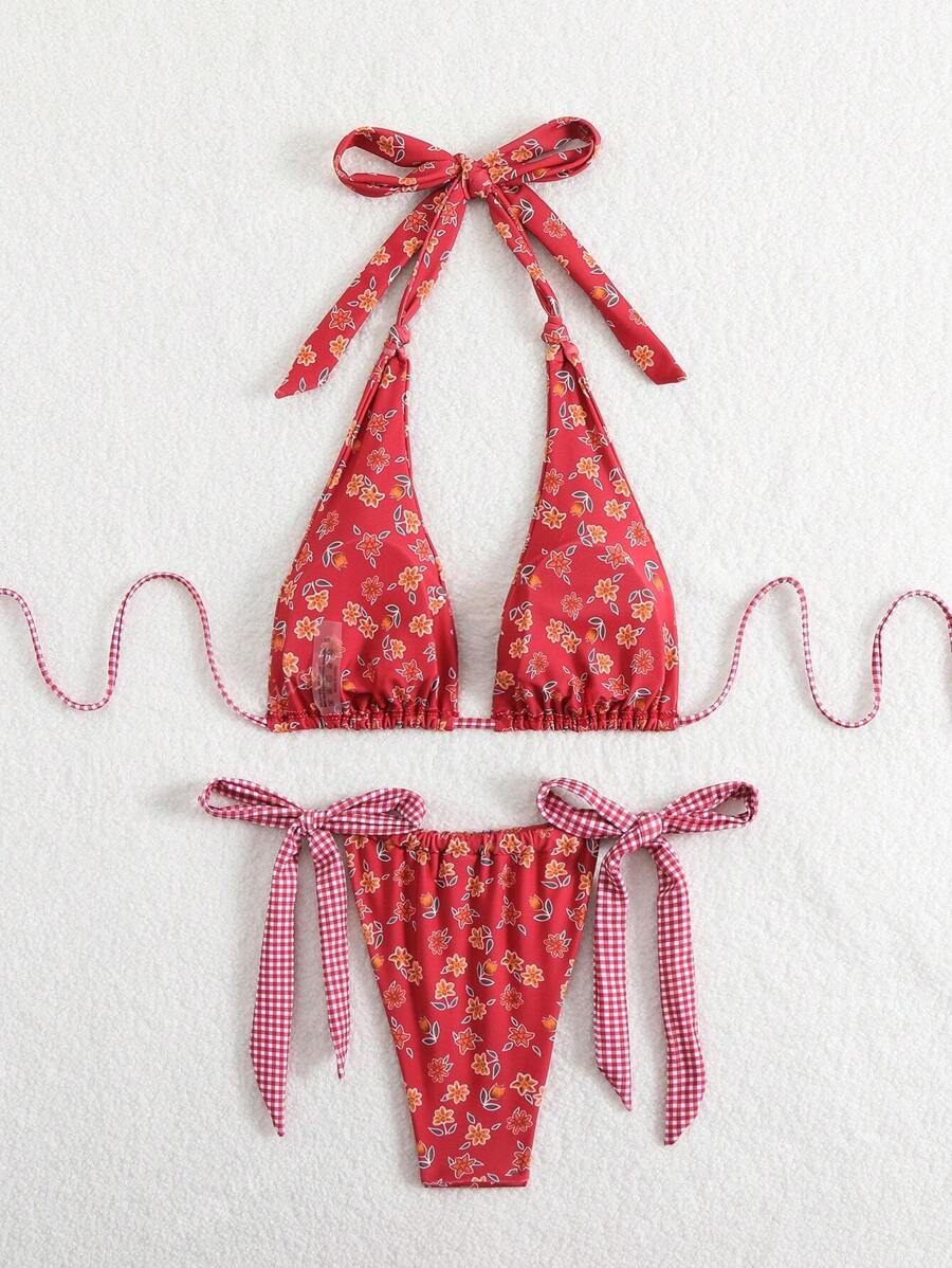 LUCKY HOLIDAY Fashion Ditsy Floral Print Sexy Triangle Bikini Swimwear Set For Women For Summer is a popular picture for sexy and hot.