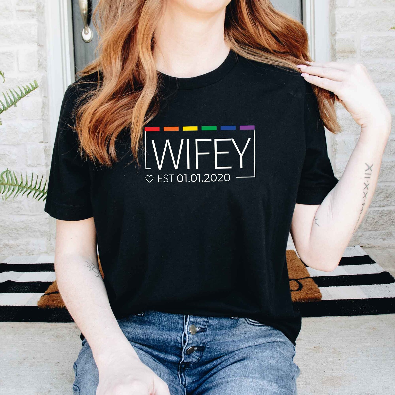 Tag : Lesbian Wife Rainbow Pride Custom Date Shirt Lesbian Mrs Wedding Lesbian Gay Bachelorette