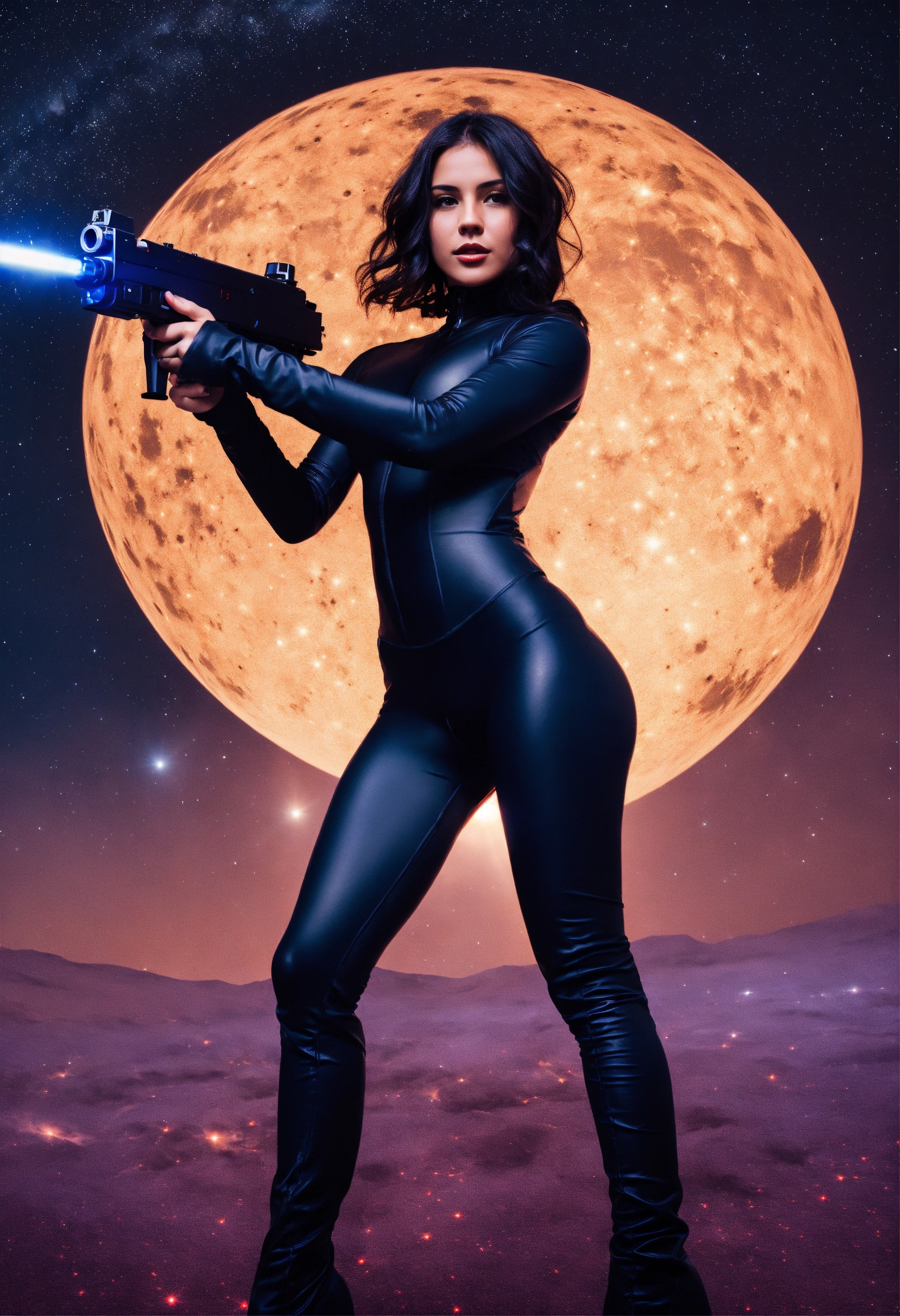 Tag : Lexica A Cute 28 Year Old Hot Girl Wearing A Open Matte Dark Catsuit And Holding A Laser Gun