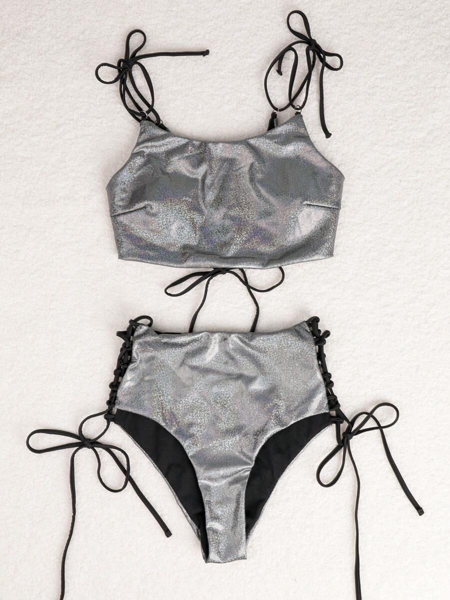 Tag : Lingerie Sexy pour femme en deux pièces de sangle laser de couleur unie Mode en ligne SHEIN