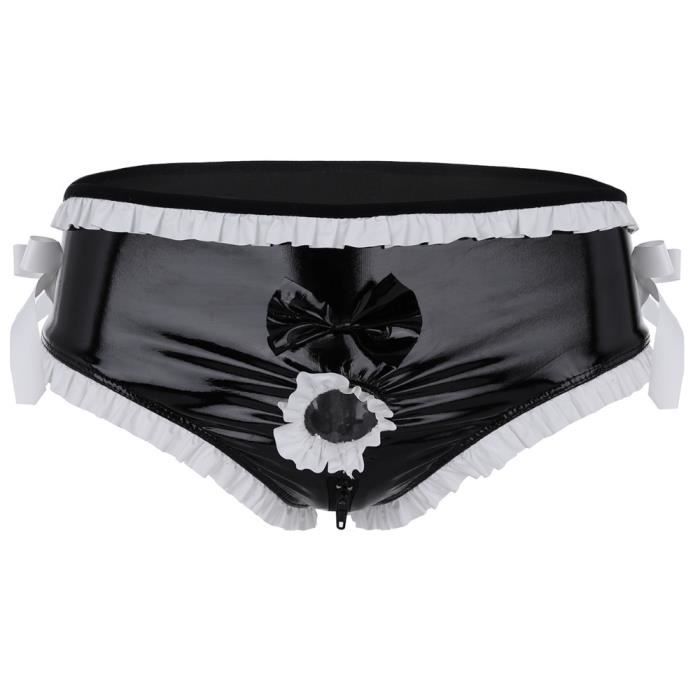 Tag : Lingerie pour hommes brillant Gay trou ouvert devant pénis Gay mâle anneau à volants garniture