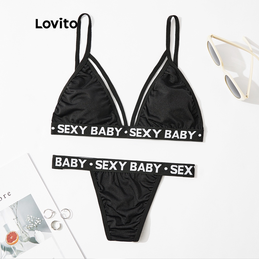 Tag : Lovito Sexy Letter Cut Out V Strings Non Removable Pads Lingerie Set L ED Black Shopee
