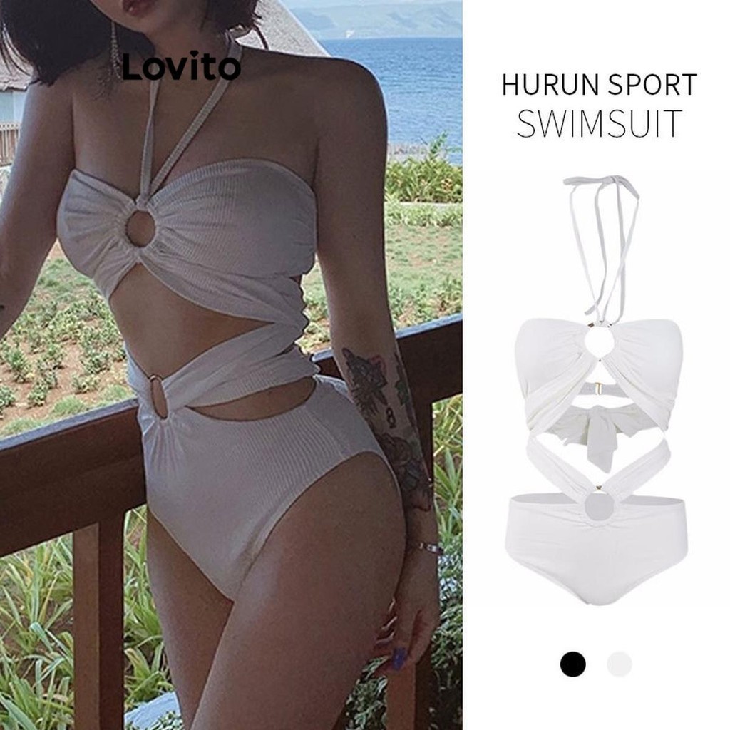 Tag : Lovito Sexy Plain Cut Out Bikini Set For Women LNE Set Bikini Cut