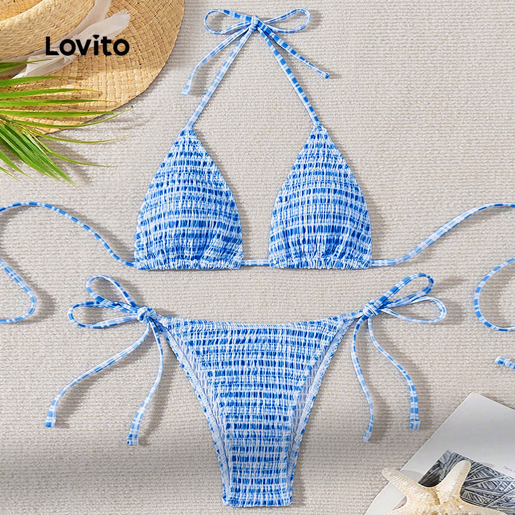 Tag : Lovito Women Sexy Striped Colorblock Tie Back Backless Bikini Sets LBL Shopee Philippines