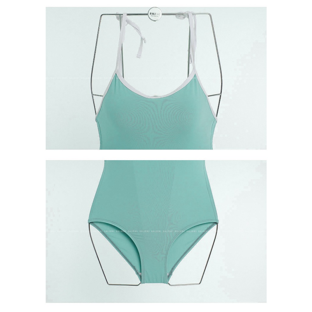 Tag : Mẫu mới Bikini Hàn Quốc xanh mint viền trắng tôn ngực sáng da cột nơ đồ bơi một mảnh cao