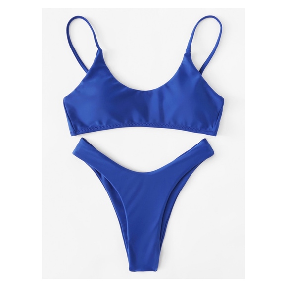 MBM Unlimited Swim Solid Blue High Leg Cheeky Bikini Set Poshmark 22100