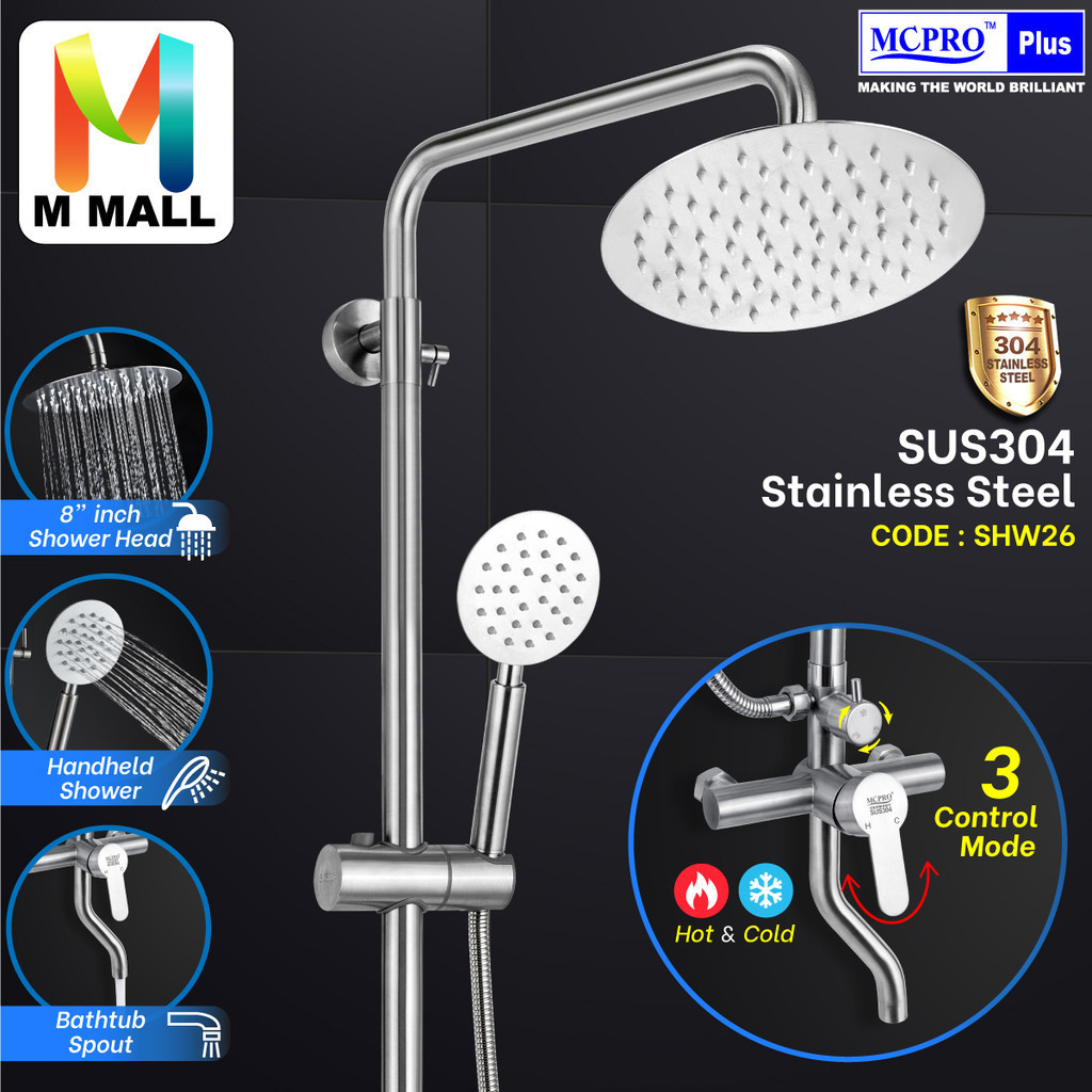 Tag : MCPRO Stainless Steel ROUND RAINFALL SHOWER SET 3 Mode Shower Mixed Hot Cold Bathtub Bathroom