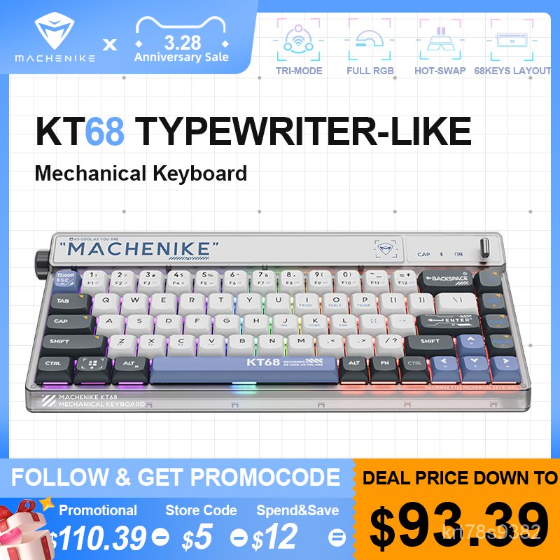 Tag : Machenike KT Mechanical Keyboard Keys RGB Hot Swap Cherry Profile Keycaps Tri Mode Wireless