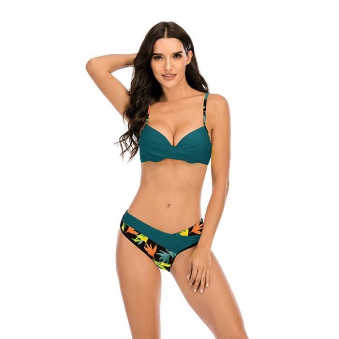 Maillot De Bain Femme 2 Pieces Col V Slim Sexy Amincissante Impression Dos Nu Bikini Ete Vert is a popular picture for sexy and hot.