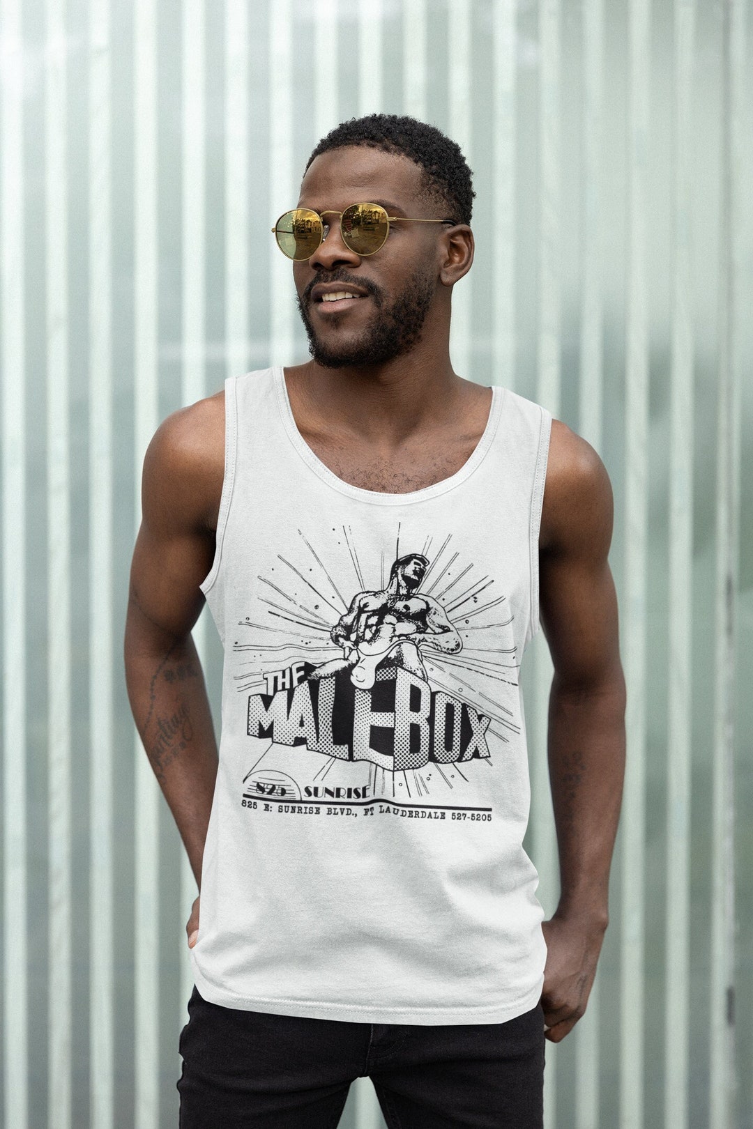 Malebox Gay Men Tank Top Homoerotic Illustration Tee BDSM Leather Club Shirt Vintage Queer is a popular picture for sexy and hot.
