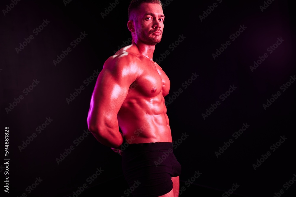 Man Professional Athlete With Naked Torso In Sports Uniform Isolated On Multicolored Background is a popular picture for sexy and hot.