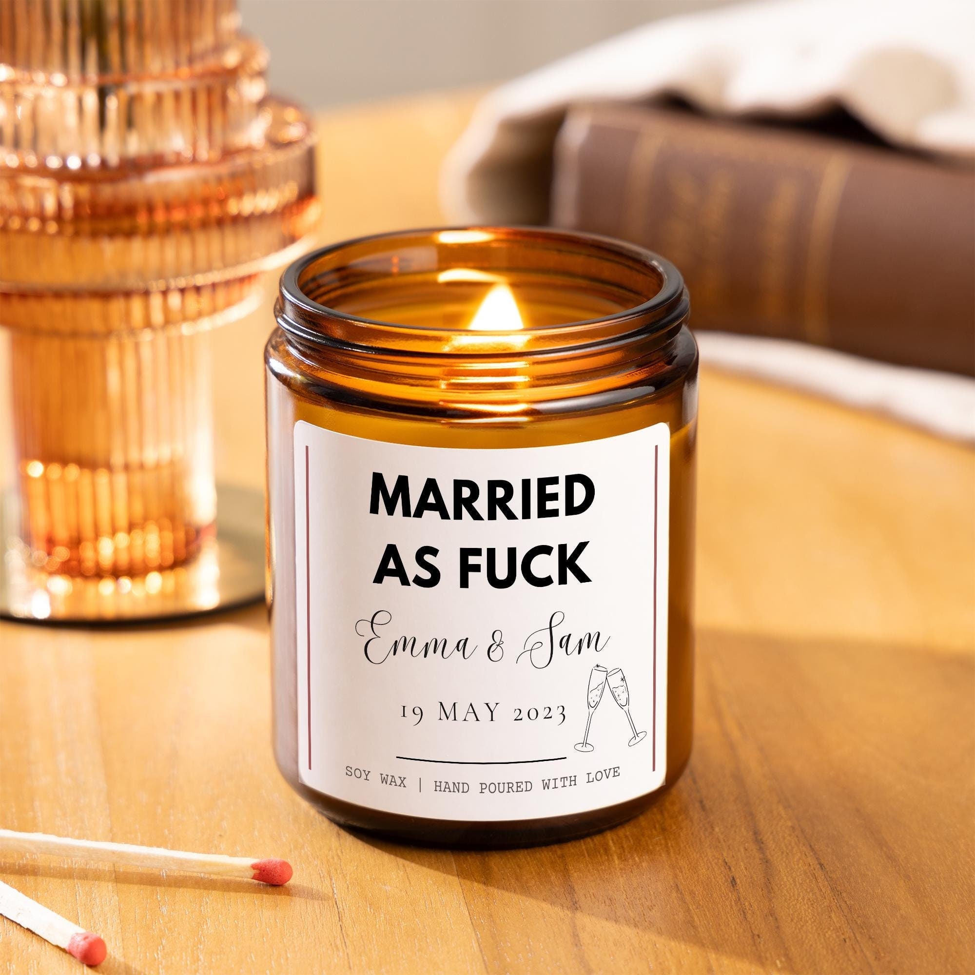 Married As Fuck Personalised Scented Candle Wedding Gift For Couple Funny Wedding Custom Gift